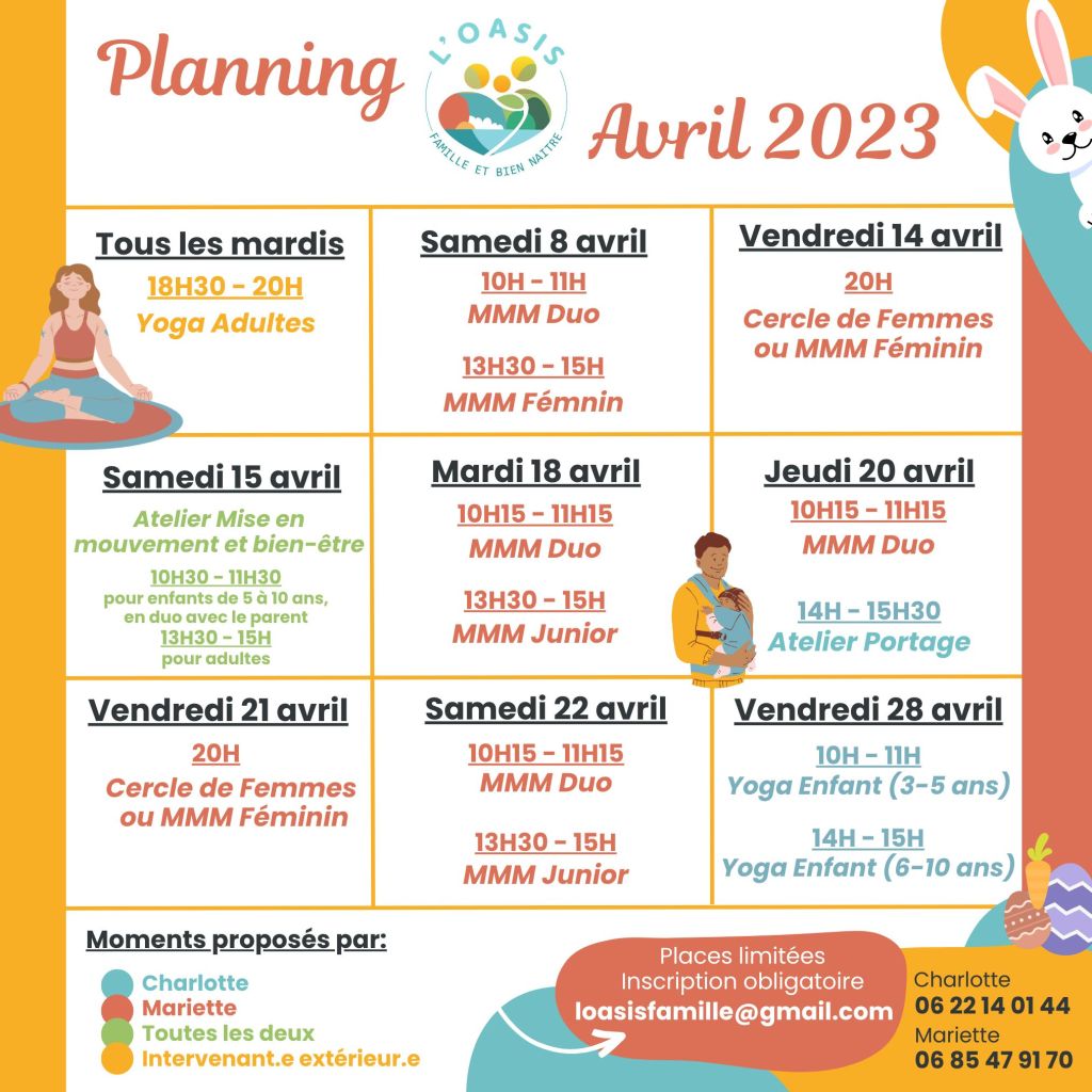 Retrouvez ici les différents événements et ateliers du mois d’avril 2023 à l’Oasis Famille et Bien Naitre à Bitche :