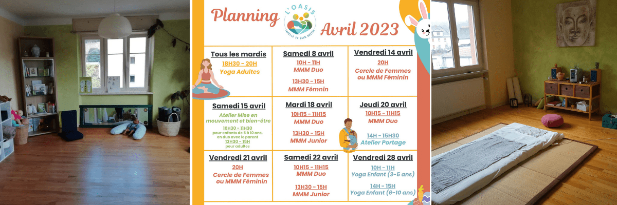 Retrouvez ici les différents événements et ateliers du mois d’avril 2023 à l’Oasis Famille et Bien Naitre à Bitche :